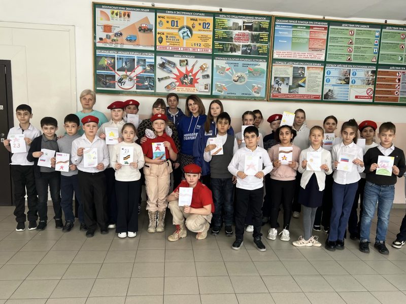 На площадке Штаба общественной поддержки в Майкопе дали старт акциям ко Дню защитника Отечества. В рамках акций активисты «Молодой Гвардии» совместно с «Юнармией», школьниками и студентами будут изготавливать поздравительные открытки со словами поддержки для военнослужащих, которые потом передадут в воинскую часть. Сегодня школьники изготовили первую партию открыток.