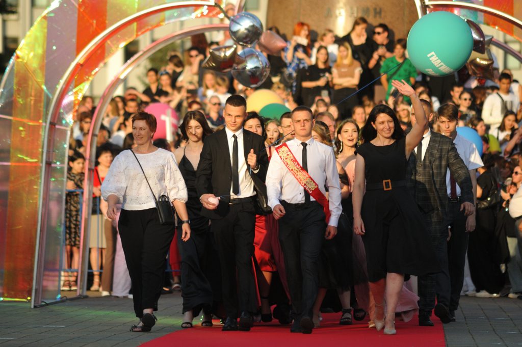 В начале мероприятия ребята прошли по красной ковровой дорожке, шествие сопровождалось трансляцией информации об успехах ребят. Затем вчерашние школьники исполнили вальс вместе со своими родителями.