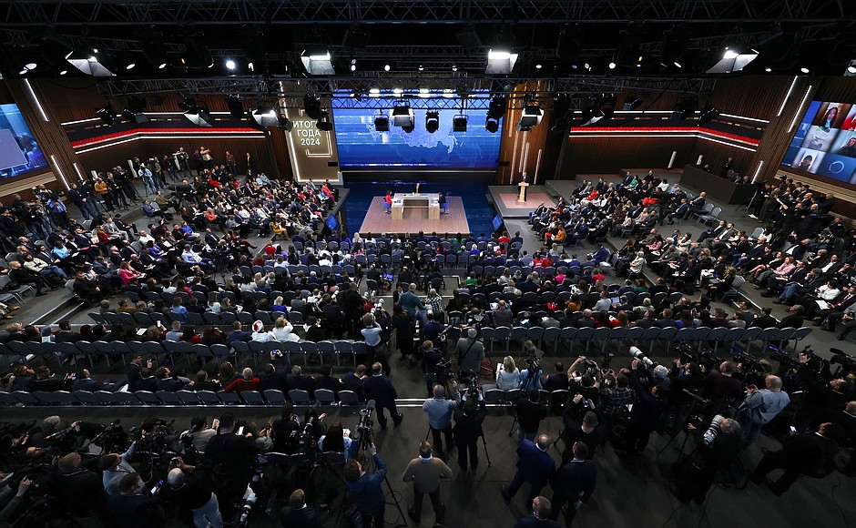 Сегодня в Гостином дворе в Москве прошла традиционная Прямая линия Президента РФ Владимира Путина, совмещённая с большой пресс-конференцией. Глава государства в прямом эфире программы «Итоги года – 2024» ответил на вопросы жителей и журналистов. В зале присутствовали представители иностранных СМИ, федеральных и региональных редакций, в том числе – журналисты из Адыгеи.