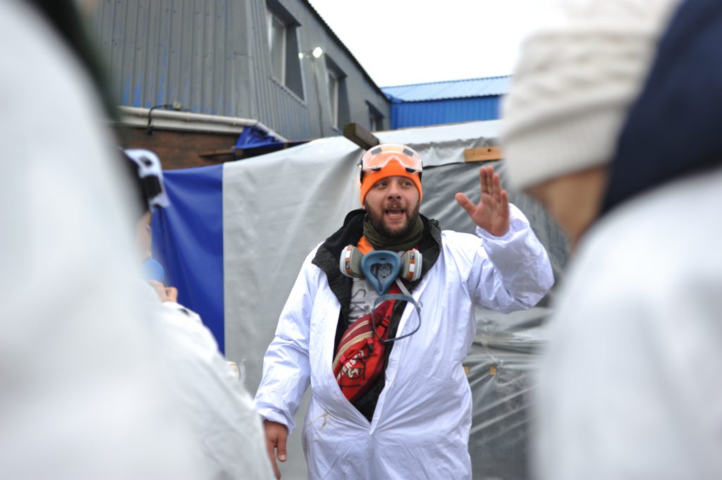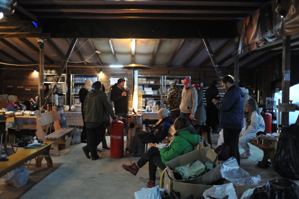 В помещении летнего кафе, наспех укрытого пленкой от ветра и дождя, собираются экоактивисты. Многие приехали в штаб впервые. Организаторы волонтерской базы «Шлагбаум» всех прибывших встречают радушно: гостям предлагают горячие напитки и сладости. Затем все добровольцы проходят необходимый инструктаж. Его, как правило, проводят более опытные товарищи.