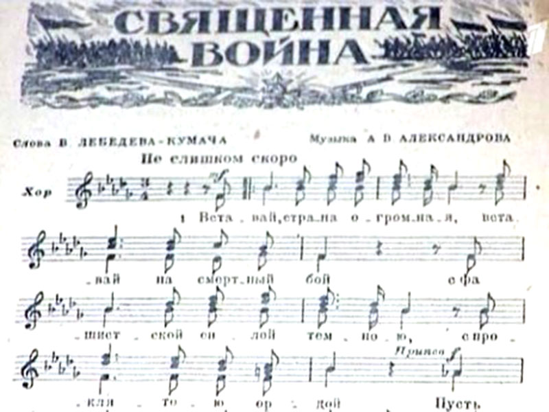 «Орэдыр — фронтым пай» зыфиIорэ джэпсалъэр яIэубытыпIэу композиторхэм заом иапэрэ тхьамафэ орэд шъитIум къехъу аусыгъагъ. ДзэкIолIэу фронтым щызаохэрэм ыкIи кIочIэрыпсэу лэжьакIохэм ягъусэу къэухъумакIохэм ясатырхэм орэдыри ахэуцогъагъ. ЦIыфхэм агу ымыгъэкIодэу, шIошъхъуныгъэ ин аригъэшIэу, гупытэныгъэ ахилъхьэу, текIоныгъэр къыдахынымкIэ орэдым ишIогъэшхо къэкIуагъ. Орэд пэпчъ итарихъ шъхьафы, ыкIуачIи зэфэдэп. Зигугъу къэтшIымэ тшIоигъор усакIоу В. Лебедев-Кумачрэ орэдусэу А. В. Александровымрэ яорэдэу «Священная война» зыфиIорэр ары. Сатырхэр гъэзетэу «Красная звездам» иапэрэ дзэ номер къырагъэхьанхэу редакцием илъэIукIэ зэлъашIэрэ усакIом охътэ кIэкIыкIэ ыусыгъагъ ыкIи ахэр игъо шъыпкъэу къычIэкIыгъэх. Заом иящэнэрэ мафэ мы усэм радиомкIэ къеджагъэх ыкIи гъэзетхэу «Красная звездамрэ», «Известиемрэ» къызэдыхаутыгъ. Мэкъуогъум и 27-м усэм орэдышъор М. И. Блантер къыфыхихыгъэу тираж минипшI хъоу листовкэхэр къыдагъэкIыгъэх.