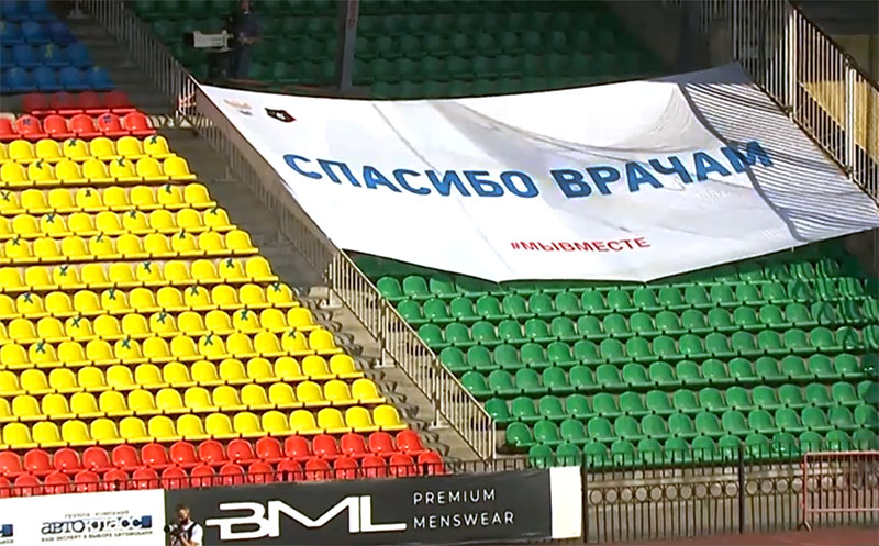 Медицинэм иIофышIэхэм ясурэтхэр ешIакIохэм ямайкэхэм атешIыхьагъэх, зэрафэразэхэр тепххэм атетхагъэх. Стадионхэм ащыкIохэрэ зэIукIэгъухэр зэпагъэухэзэ, зэхэщакIохэр, ешIакIохэр къэгущыIагъэх, врачхэм «тхьашъуегъэпсэу» къараIожьыгъ. Командэхэм якапитанхэу, ешIакIохэу Игорь Акинфеевыр, Александр Мартынович, Сослан Джанаевыр, Андрей Малых, нэмыкIхэри видео едзыгъохэм къащыгущыIагъэх.