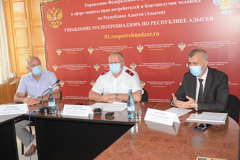 Ащ хэлэжьагъэх Адыгэ Республикэм псауныгъэр къэухъумэгъэнымкIэ иминистрэу Мэрэтыкъо Рустем, ыпшъэкIэ зигугъу къэтшIыгъэ ведомствэм ипащэу Сергей Завгороднер, «Росздравнадзорым» республикэмкIэ икъутамэ ипащэу Шымыгъэхъу Айтэч, журналистхэр.