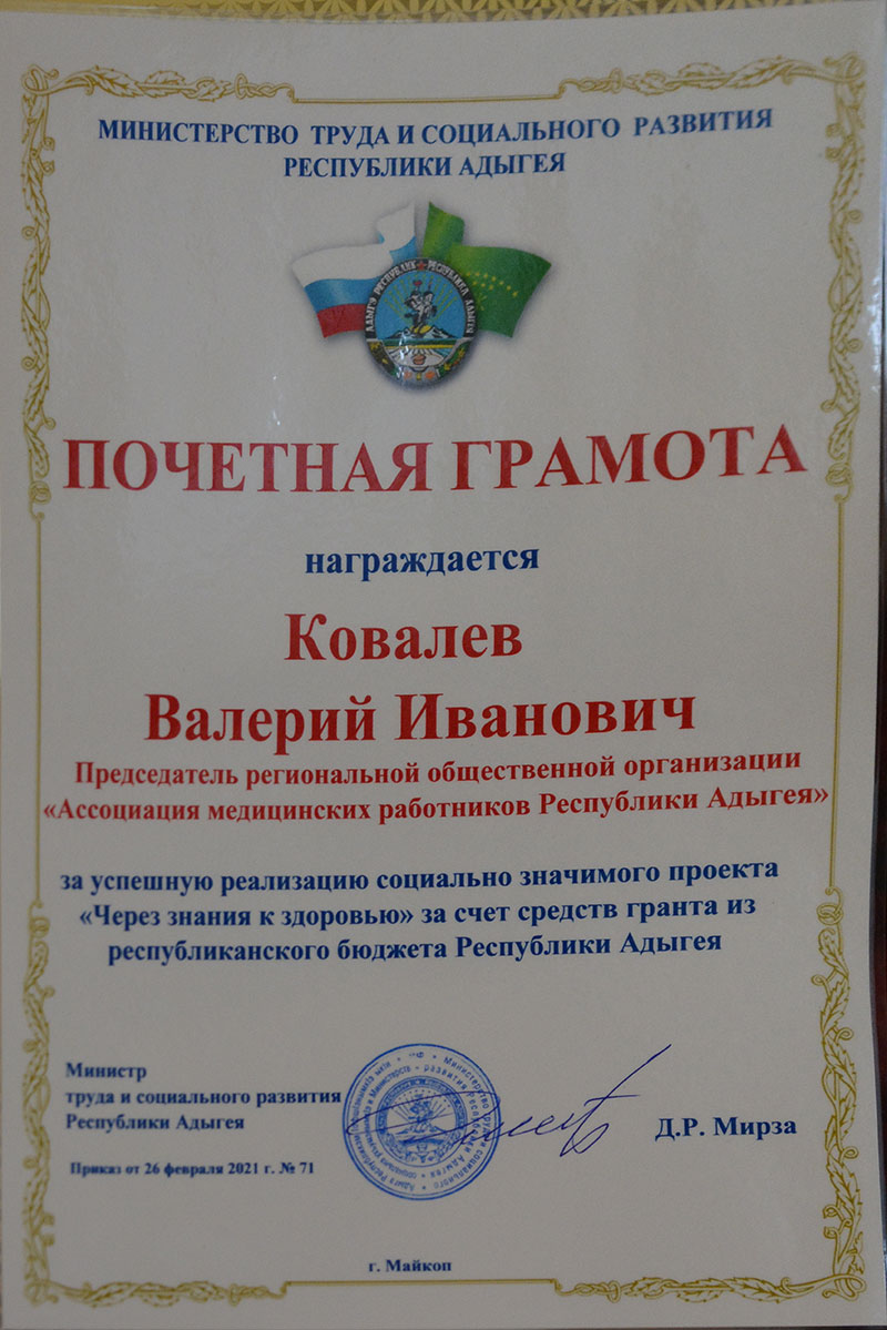 — Обществэм илъэныкъо пстэуми коронавирусым иягъэ аригъэкIыгъ. Пчъагъэрэ хэдгъэунэфыкIыгъ медицинэм иIофышIэхэм анахь къиныр апшъэ зэрэдэфагъэр. Ау, шъо шъуиIофышIэхэри апэрэ сатырхэм ахэтыгъэх. Къиныгъохэм ямылъытыгъэу ведомствэм иилъэс IофшIэн зэрифэшъуашэу ыгъэцэкIагъ.