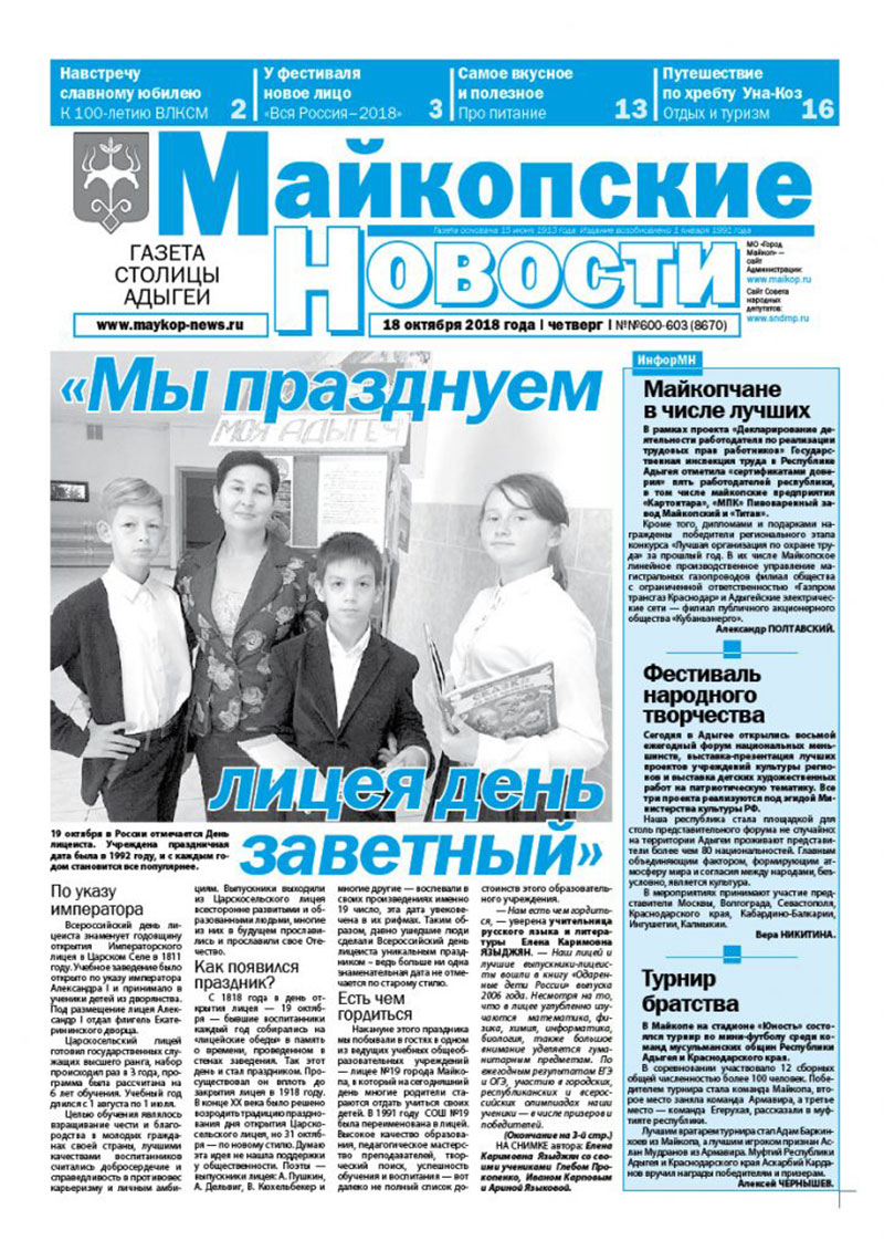 Тисэнэхьатэгъоу, гъэзетэу «Майкопские новости» зыфиIорэм иредактор шъхьаIэу Валерий Кондратенкэр непэ къызыхъугъэ маф.